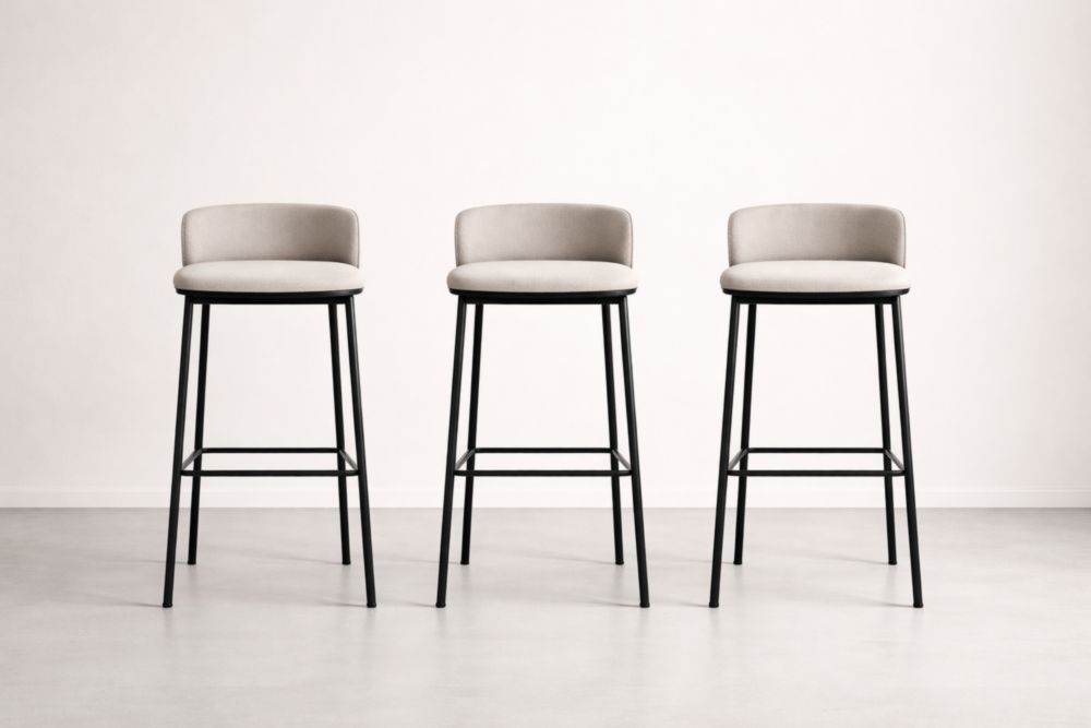 Set of 3 Beige Upholstered Bar Stools with Metal Frame