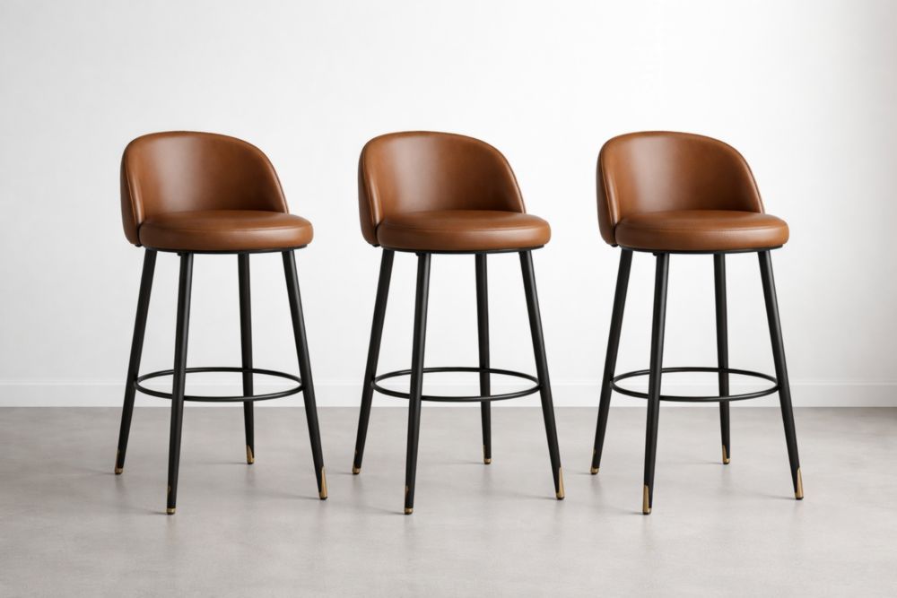 Set of 3 Brown Faux Leather Bar Stools with Black Metal Legs